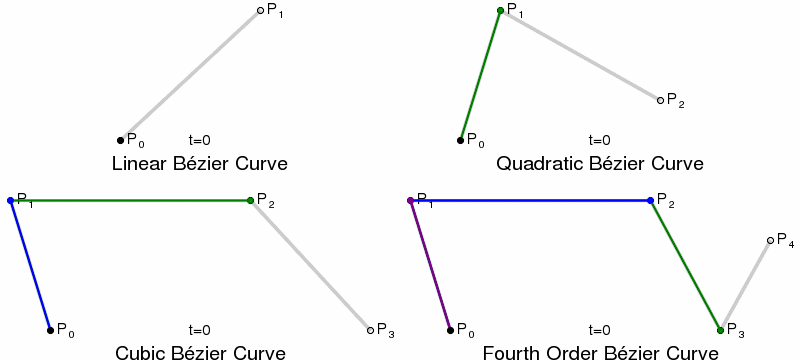 Once we have calculated our KDE, we need to plot the curves. This is done using SVG paths, using Bézier Curves. Bézier Curves are defined by start and end point, plus 1 or more control points, which act like gravity pulling the curve towards them. Quadratic Bézier Curves have a single control point, Cubic have two, and so on.