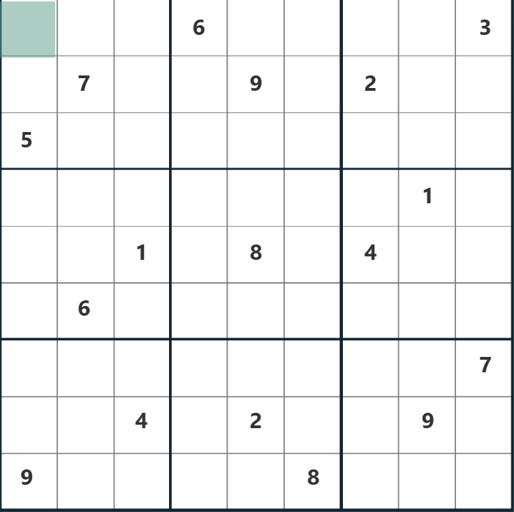 Sudoku is a logic puzzle played on a 9x9 grid. Your goal is to fill the grid with digits from 1 to 9, ensuring that each column, each row, and each of the nine 3x3 subgrids contains all the digits from 1 to 9.